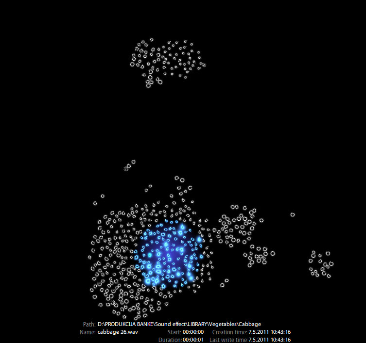 Soundtorch lets you browse through your audio collection extremely fast. Just drag your audio files onto the Soundtorch view ― all sounds are immediately arranged in a meaningful way and ready to be auditioned. Soundtorch is driven by the C.A.S.E. (Computer Aided Sound Exploration) engine, a sophisticated suite of algorithms that analyze and intelligently classify your audio collection.
