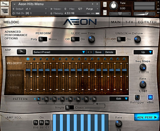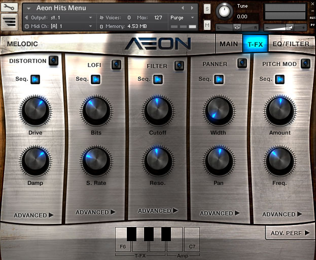 While both feature quite a lot of arpeggiated synth sounds, Aeon Melodic also offers some of the more unique, organic sounds heard today. All the organic sounds are deep-sampled, multi layered round robins. Most of these are by default made from three layers (two are usually purged on load) which will enable you to shape them anyway you want. Each layer can be modified inside Aeon via standard effects (Envelope, EQ, Filter, Level, Pan and Tune).