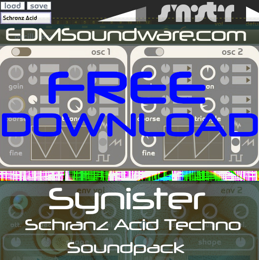 Edmsoundware.com released ‘Synister Schranz Acid Techno Pack’ a freeware soundpack for the Synister synthesizer, and 3 DAW’s.