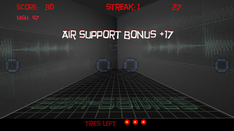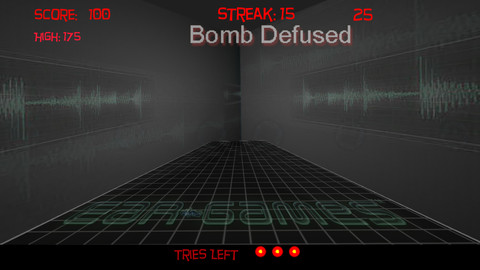 It was fairly challenging to design. Games like precise actions and reactions, but it turns out our hearing—localization in particular—isn’t really all the precise on its own. There are a couple of very good 3D sound based games out there, but they are generally slower and more deliberately played. I really wanted something that you could pick up, try to beat your high score (or your friend’s ) and be done within a few minutes. So I went for the fast-pace. A Monster quickly appears, and you need to kill it as fast as you can. You hear a bomb, and you need to defuse it in a few seconds or it’s game over. There are moments where you’re tapping the screen as fast as you can. So the gameplay is short, quick, and the sounds themselves need are as well. You can’t very well have a 8-second “monster death” sound when you need to move on to the next monster before time runs out.