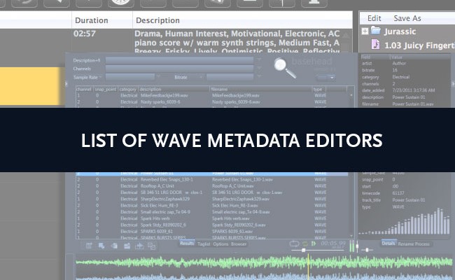 List of Metadata BWF editors Zdravko Djordjevic January 22, 2015 Featured, Opinions and research We compiled a small list of wave metadata editors. If you know of one that is not on the list then please let us know we will add it to the list.