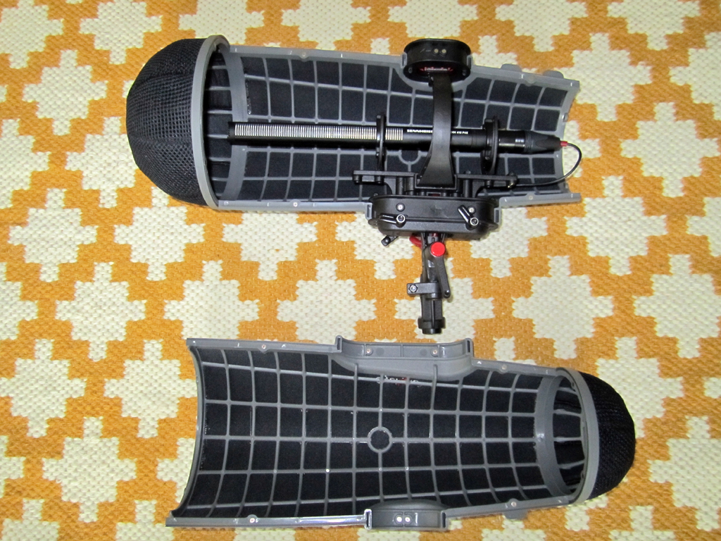 When I opened the box I was greeted with a stylish black and grey zeppelin shaped windshield. I immediately liked the new somewhat futuristic design. When I picked it up I was a bit surprised of its weight. Don’t get me wrong it is lightweight but I was expecting it to be even more lighter. I then compared it to my Rode Blimp (the old model) and instantly felt that the Rode Blimp is a bit heavier. When comparing Cyclone to one of Rycote’s modular windshield kits the difference in weight is not that big and I think Cyclone is a tad lighter.