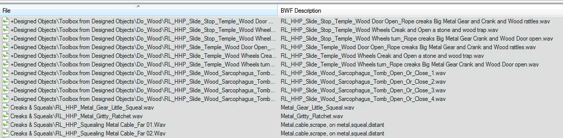 I personally don’t like the way metadata was handled in this library. First few sounds in each sub category have embedded metadata while the rest just have filename copied over to the description field in BWAV. You can however download a separate spreadsheet with metadata where each category is properly tagged.
