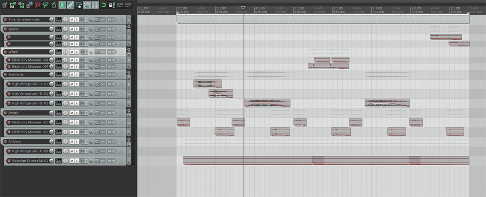 As far as embedded metadata goes, Polarity doesn’t offer embedded metadata which is kind of a bummer. All of the metadata is in the filename, so if your search is able to scan filenames than you should be ok. I found that in Soundly the library couldn’t be found using keywords from the filename. Perhaps this is also the limitation of Soundly because it works fine if you are using Reaper’s media manager. As for the filenames, I have to say that the naming conventions is good. Each filename is divided into four segments. Main Section (e.g. “Electricity Museum” or “Science Lab”), Main Group Name (e.g. “Arc Lamp” or “3D Printer”), Distance from Microphones (e.g. “3 Meters”), Embedded Metadata (e.g. Clunky,Metal,Sparks,Generator,Start,Stop”).