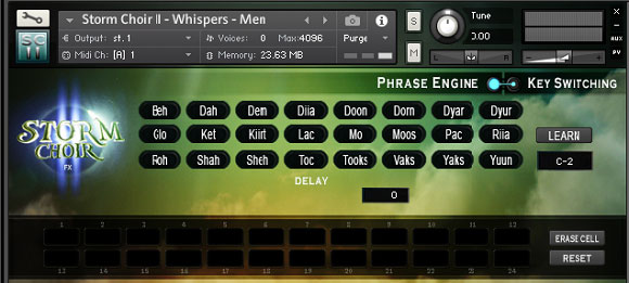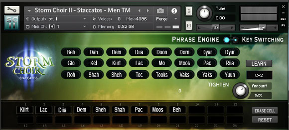 You can choose between 24 different Slavic sounding syllables, that are accessible through a phrase builder or through key switches. The syllables are very much to my liking and have a very unique sound, that is quite different from the typical Latin sounding syllables we are used to in most sampled choirs.