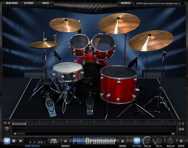 So far ProDrummer consists of two drumkit libraries, Volume 1 and Volume 2. Both are bought separately or as a bundle. Volume 1 is a 60 GB collection of different drum kits and midi grooves produced by music industry professional Mark ”Spike” Stent and EastWest produced Doug Rogers with drummer Steven Sidelnyk (Madonna, Seal, Massive Attack) in the sticks. Volume 2 is a 40 GB library with different kits and grooves produced by another industry pro Joe Chiccarelli along with Doug Rogers while having Matt Chamberlain (Pearl Jam, Bruce Springsteen) in the drums.