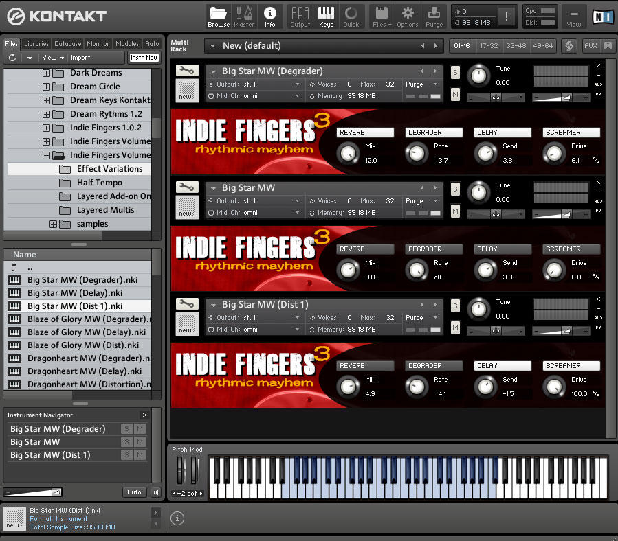 Dream Audio Tools has quite a few varied virtual instruments to offer. I got hands-on with their “Platinum Bundle For Native Instruments’ Kontakt” which, for $200, offers up a good portion of their catalogue. This means I have a lot to get through and instead of reviewing it as a single entity, I decided the break the review up into sections depending on which instrument was represented – guitars/bass, keys or percussion/effects.