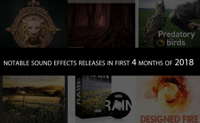 Notable sound effects releases in first 4 months of 2018 Zdravko Djordjevic April 16, 2018 Featured, SFX roundups In this special roundup, we look at some of the great sound effects libraries released in first 4 months of 2018. Regular roundups will resume in May.