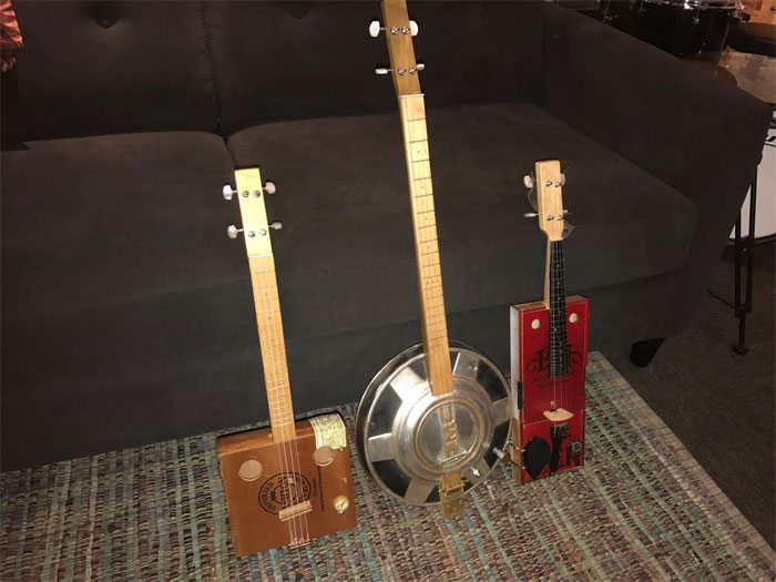 Haha! Well I love finding little gems at thrift stores or flee markets and seeing what can become of them! I was introduced to a guy name Rich Briggs (http://www.cigarboxguitarsbyrich.com/) who had a setup at a flee market down on Melrose, so I went to go check out what he had. I bought a small cigar box ukelele from him that day and asked if he did custom builds. He jumped at the opportunity and over a couple years, we went back and forth on a bunch of concepts. A few of my favorites are pictured below, including a red, fretted, steal string violin.