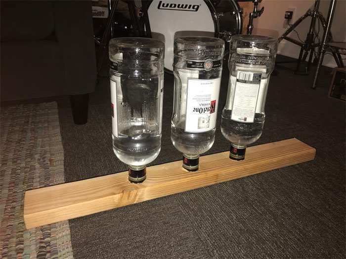 Ha! Agreed! One of my favorite things I put together are the “Ketel Bells” (picture and MP3 attached). Took me a few months to make them, as I really don’t like to waste. There is a little bit of water in each to give a different pitch… pretty simple concept… but layering this multiple times, hitting them with different sticks or brushes, pitch shifted, etc… gives a neat, distinct texture that I used as the sound for the Bit Bugs in Dinotrux.