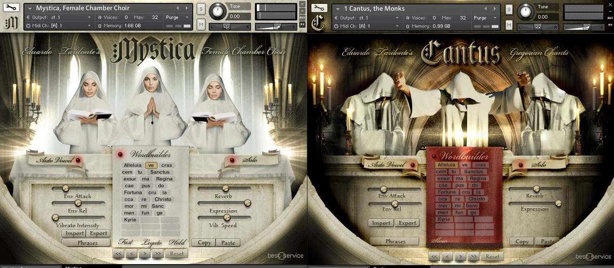 The new feature of Mystica is the ability to import and export phrases to Cantus and vice versa. The current version of Cantus still doesn`t support the import/export option, but I have checked with Eduardo and he explained that the update was soon to be expected. This addition is nice if you want phrases and words to be sung by both vocal libraries.