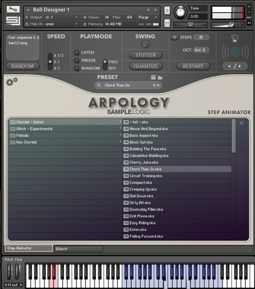 As the name implies, Arpology is an arpegiated sample library and I must say it plays really well. Sample Logic had quite aggressive marketing to let us know about their new product so I was a bit sceptical about it at first but, after having spent time with it, I have to say they aren’t wrong. I will go into details about it in the GUI part of this review.