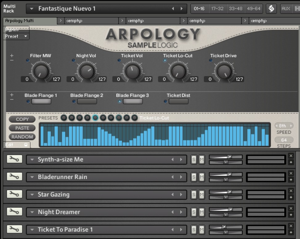 Arpology is therefore a must have for composers who don`t have time to program their own synths and for those wishing for a fresh set of sounds and possibilities in their studio.