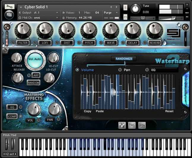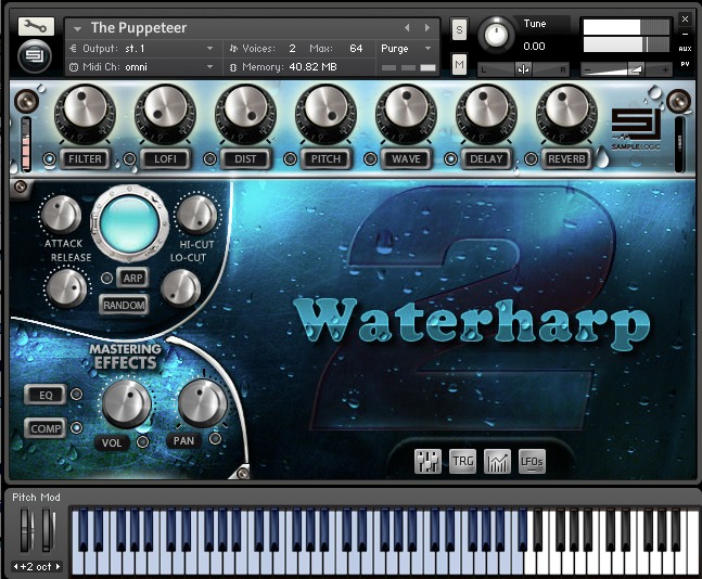 I mentioned that Waterharp 2 will probably sound nothing like the authentic waterharp but that is not entirely true. The original tone of the whole instrument is still preserved but multiplied with Sample Logic’s creativity.