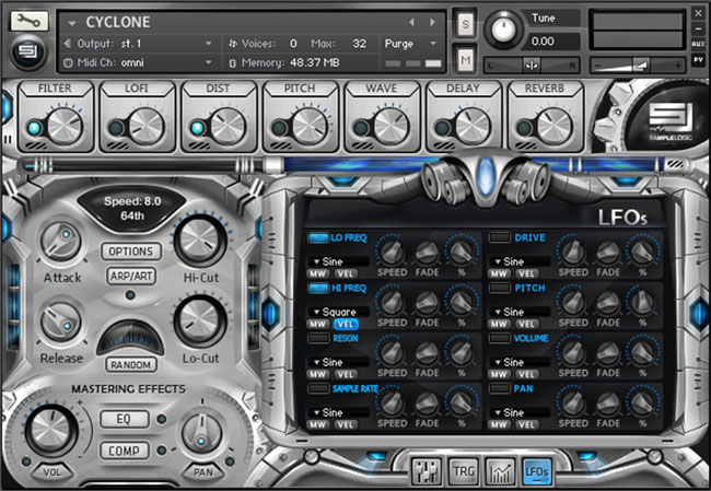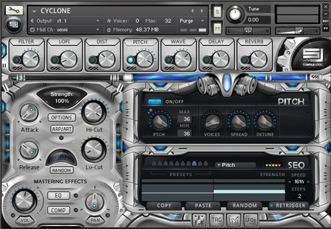 Sample Logic has reinvented the user interface from the ground up! The core of CYCLONE is focused around the user interface and experience, providing the freedom to infinitely transform samples into awesome twisted evolving synths with enormous power. The interface still includes Sample Logic’s signature Multi-core Effect Sequencers, Triggers, and Arpeggigater and now rises to new heights with several new features such as: