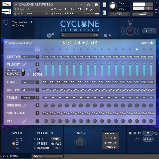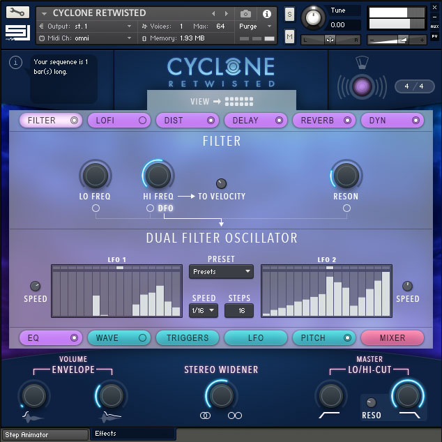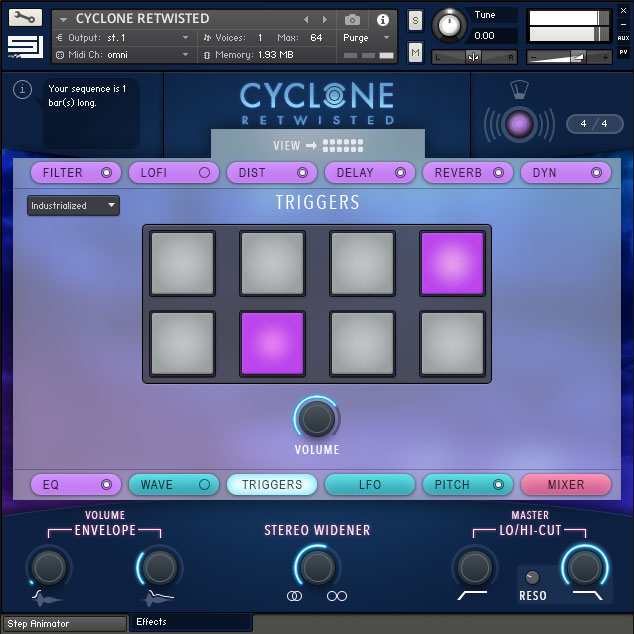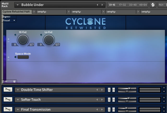 CYCLONE Retwisted includes over 850 instruments & multis including CYCLONE Retwisted, CYCLONE 1.0, and the Glow Multi Pack, and a 2.89 GB compressed sample library using Kontakt’s lossless sample storage compression. All samples are delivered at 44.1kHz/24-bit.