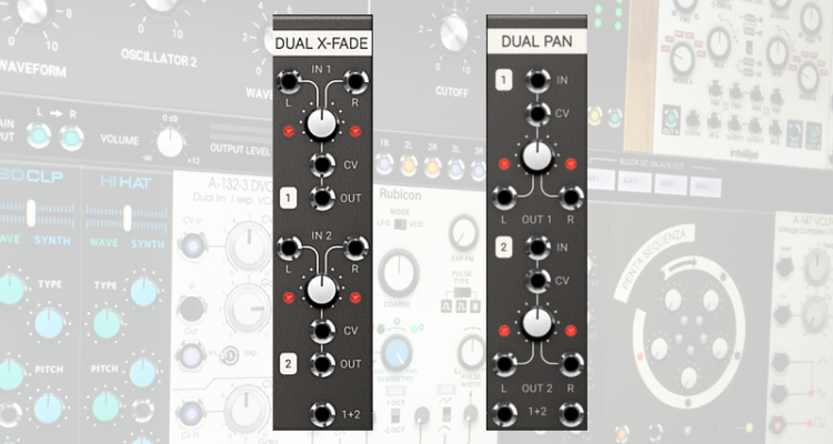 Dual X-Fade is a two-channel, CV-controllable crossfade module that lets you create new and interesting textures by blending two separate mono signals. For example, patch in two different waveforms from an oscillator — such as sine or saw — and use the blend knob to set the level between the two signals. You can also morph seamlessly between them by manually adjusting the blend knob while the song is playing or control the knob with an LFO via CV.