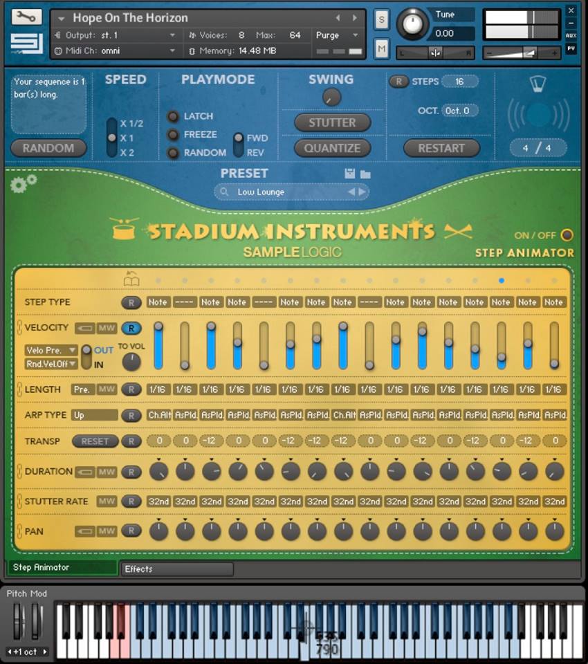 • “Pitch” sequencer for quick and easy pattern based transpositions on the fly