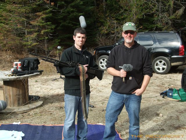 I asked the guys at Wrenco Arms here in Sandpoint Idaho if they were up for having their prized M-60 machine gun recorded. They were totally in and asked if I wanted to do some other guns as well. Since I am not a gun expert I asked them to bring some big guns. We ended up recording a Barret 98B Lapua Magnum and a Remington 700 with Weatherby 300 rounds. We also had some M-16 guns scheduled but the rain came in and cut the session short. Before the rain started I also recorded Tannerite explosions. These were fun and I will post a blog about that part of the session in the future.